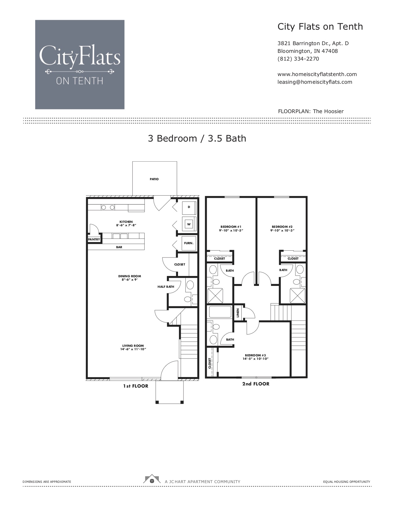 The Hoosier 3 Bedroom Townhome Floor Plan